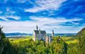新天鹅堡有乳白色的大理石外墙和灰色的尖顶,四周是几个高耸的尖塔,她立在三面是绝壁的山顶,在一片青翠中,就像生气的音乐、童话和梦境,美得让人心醉。
