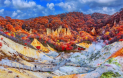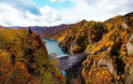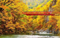 布”流淌在美丽的峡谷中,强烈的水流与被红叶装点的断崖绝壁相得益彰。 | ||