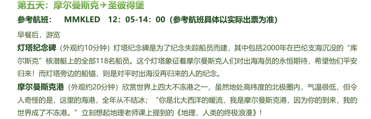 俄罗斯摩尔曼斯克+莫斯科+圣彼得堡追光9天之旅 打卡三城不留遗憾