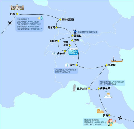 专业讲解 · 听懂每一幅画与每一座城的灵魂 这是贯通艺术、建筑、科学与信仰,构成一条横跨法意瑞的欧洲文明艺术长廊 (配套签证:意签)