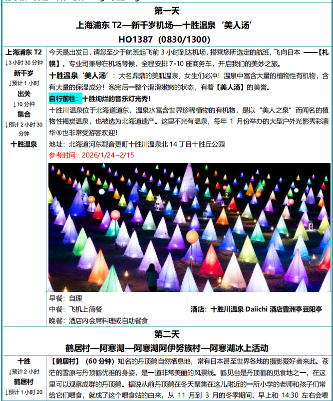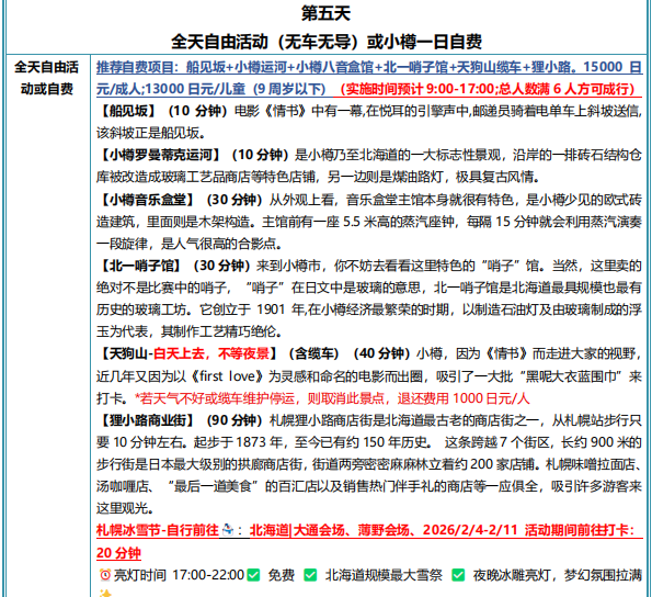 【超级服务】出发前 5 天发送出团通知书,建立微信群,群标准:2 个客服+1 个北海道当地负责人,