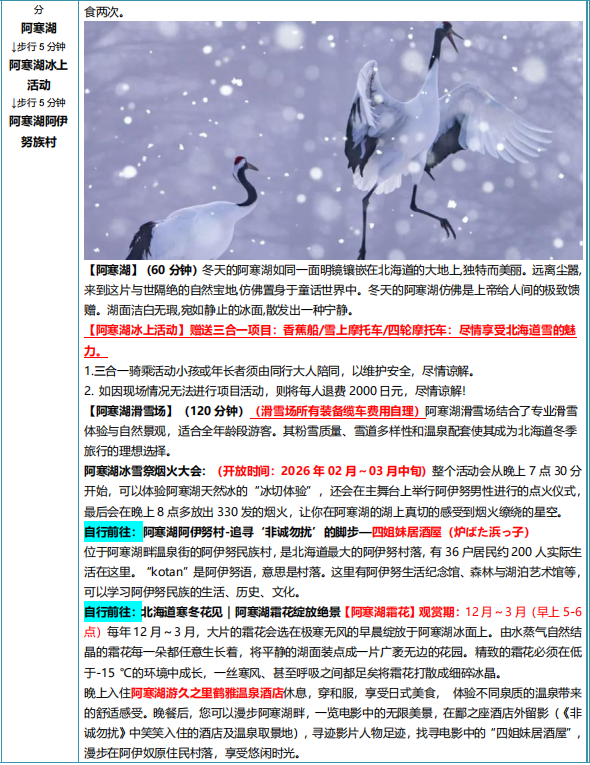 鹤之美+砂汤阿寒湖嘉年华+企鹅漫步+3 晚温泉之旅(1 晚鹤雅 5 钻系列酒店)