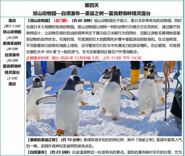 7. 门票:网走破冰船船票或流冰馆门票、旭山动物园,欢寒村;
