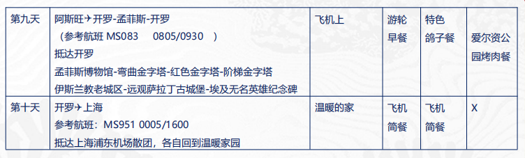 10. 自选项目标准:以行程表所安排的自选项目为准,具体安排详见《旅游合同(阿联酋、埃及自选项目)补充协议项目