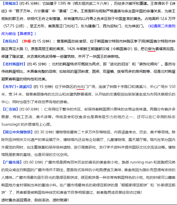 7、签证:包含韩国团队签证,因个人签证或材料问题领馆拒签,损失游客自行承担。