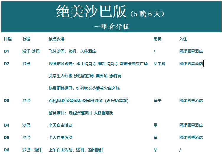 6.行程外任何观光项目及自费活动(包括这些活动期间的用车、导游和司机服务等费用)。